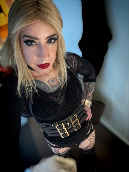 Hi there, you’re a very naughty boy. I’m Faye Moon — a slutty tattooed trans goth from London. My seductively soft English accent and a wicked smile hints at my naughty nature, the kind of trouble you’re just aching to get into. No photo editing here, what you see is what you get, I’m a girl who loves her job and a when I haven’t got a dick to suck or to sit on, I’m just not happy.